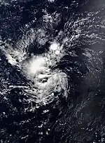 An organized region of convection within the Intertropical Convergence Zone developed into a tropical depression at 03:00 UTC on July 5 while located roughly 700 mi (1,100 km) south-southeast of Johnston Atoll, becoming the farthest-south-forming central Pacific tropical cyclone since Tropical Storm Hali (1992). Steered westward, the depression failed to intensify due to its quick forward motion despite a seemingly favorable environment, and it quickly dissipated at 00:00 UTC on July 6.[18]