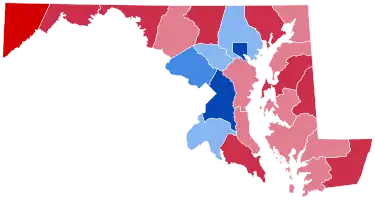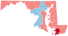 Bush did win most of the counties in Maryland, but he lost the central part of the state (Washington DC suburbs and Baltimore), where most of the population is. The middle section is very urban and includes a large number of African Americans, many of whom are affluent (specifically in the Democratic stronghold of Prince George's County). Bush dominated Western Maryland and the state's Eastern Shore, which are very rural, but he carried only two congressional districts (see below). However, Kerry's margin of victory was slightly less than in 2000, when Gore won by 16.39%. As of 2020, this marks the last time in which the Democratic candidate won less than 7 counties. [7] This also marks the only time since 1880 in which Maryland gave a majority of its vote to a candidate that lost both the popular and electoral vote.[8]