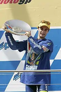 The 250cc title was won by Daniel Pedrosa on a Honda.