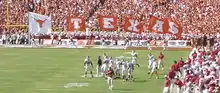 Media and fans of college football consider the UT program one of the great powerhouses of the game because of the school's winning record as well as their previous national championships in 1963, 1969 and 1970.[19][20][21][22] From 1936 to 2004, the team finished the season in the top ten team of the Associated Press Poll 23 times, or one-third of the time.[4] At the start of the 2005 season, the Longhorns were one of the most victorious programs in college football history; they were third in total victories and fourth if measured by winning percentage.[23][24][25]