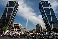 Men's race passing by Plaza de Castilla and Gate of Europe.