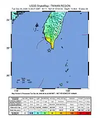- Wu, Y.-M.; Zhao, L.; Chang, C.-H.; Hsiao, N.C.; Chen, Y.G.; Hsu, S.-K. (2009). "Relocation of the 2006 Pingtung Earthquake sequence and seismotectonics in Southern Taiwan". Tectonophysics. 479 (1–2): 19–27. Bibcode:2009Tectp.479...19W. doi:10.1016/j.tecto.2008.12.001.