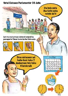 Parliamentary elections were held in East Timor on 30 June 2007.[1] The new composition of East Timor's national parliament was determined by the country's population. 529,198 voters were entitled to vote, 708 polling stations were ready.[2]