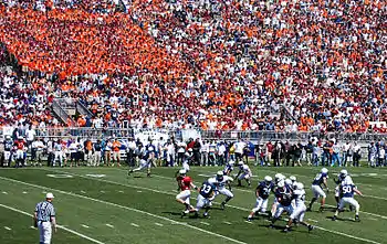Thousands of fans in the huge crowd wore maroon and orange shirts, in tribute to the victims of the previous week's events at Virginia Tech, including a section of 800 fans that formed a large "VT" block.