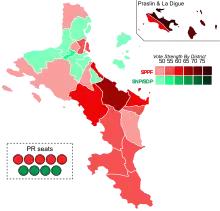 | Seychelles People's Progressive Front | 30,571 | 56.16 | 18 | 5 | 23 | 0 | ||
