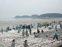 On 14 December, the oil balls had arrived at Anmyeon-do[10] (安眠島; Anmyeon Island), resulting in at least five beaches being contaminated with large tar lumps. It was believed that the oil belt was not going to go down to Anmyeon-do, but bad, windy weather was responsible for it. On 15 December, the tar lumps had also floated to Boryeong (mostly around Wonsan Island[11] and Sapsi Island of Boryeong) and to Gunsan in North Jeolla province as well.