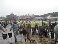 On 10 January 2008, the number of volunteers topped the 1-million mark to reach 1,037,000 people, 33 days after the accident occurred on 7 December, according to the South Chungcheong provincial government.[14] The Taean office for emergency operations reported that the volunteers included 580,000 ordinary civilians, 186,700 local residents, 127,000 soldiers and policemen, and 57,143 public officials. According to the emergency office, an average of 20,000 people volunteered during weekdays and 3,000 volunteered over the weekends.[15]