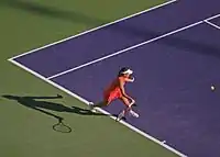 Ivanovic was once again seeded first after being first seed already in Doha. Playing her first match at Pacific Life Open against number 77 Raluca Olaru, she had to give her best to get through inspired opponent and she eventually recovered from second set loss with 6–0 in the third set, winning after nearly two hours.[4] Though her next opponent was 31st seed, Tathiana Garbin, Ivanovic had better time on court now, as she lost three games in first set and bageled for the fifth time in a season in second set. In round of 16 another Italian, Francesca Schiavone, awaited. Thirteenth seed Schiavone started better, cruising through first set losing just two games. However, after managing to win the second set 7–5, she cruised herself through the third set, losing two games. In the quarterfinals, she faced one spot better ranked player, Vera Zvonareva, at number 21. But Ivanovic showed that ranking is not the most important thing that matters, as she beat her a lot easier, losing just five games to reach first semifinal in Indian Wells, enhancing previous best result of quarterfinals. Facing top 10 opponent for the fifth time in a season and world number 4 in Jelena Janković, Ivanovic won in straight sets to reach first final of Indian Wells Masters.[5] Ivanovic improved head-to-head record to 5−1 against Janković. In the final she played against Svetlana Kuznetsova, the final contested of first and second seed. Ivanovic won 6–4, 6–3 to win third Tier I title, the biggest after Grand Slam. This was her first title of 2008. Also, as Indian Wells is called "The fifth Grand Slam", and as Ivanovic didn't won any Grand Slam at the moment, this was her biggest title at that moment. She also improved to convincing head-to-head with Kuznetsova, the same as with Janković, 5−1.