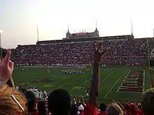 Former Southwest Conference and current Conference USA members, the SMU Mustangs faced the Cougars in their twenty-fourth meeting.[30] The first game between the two teams took place during the 1975 season when Houston joined the Southwest Conference, and the teams have regularly played each other since. The Cougars led the series 13-9-1, including a 38-28 win against the Mustangs last season. This season, June Jones, former Hawaii Warriors head coach took the same position at SMU.[31] At Hawaii, Jones had gained national attention after the Warriors went undefeated, and were invited to the 2008 Sugar Bowl.[32] After the win, the Cougars moved up in the Conference USA standings to tie for first with an undefeated Tulsa in their division.