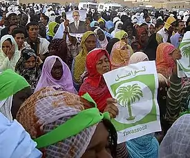 Waghef and three other high-ranking officials (including the Interior Minister) were released by the military on August 11, while Abdallahi remained in custody.[24][25] A few hours later, Waghef spoke before a rally of thousands of people and expressed defiance toward the junta, saying that Mauritanians did not accept its rule and urging the people to continue struggling to restore Abdallahi to power. He said that Abdallahi thanked them for their "untiring fight ... to restore constitutional order".[25]