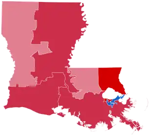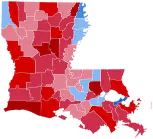 In this election, Louisiana voted 25.9% to the right of the nation at-large, or a 13.85 percent bigger differential than in 2004.[1]