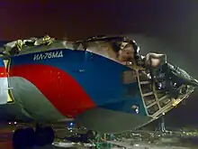 ![]() The remains of RA-76825, a few hours after the collision. | |