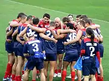 ![]() Melbourne huddle against Collingwood in round 12 | |||
