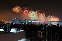 The event began at 8:10 pm with a massive river side display of fireworks and lights.[4]