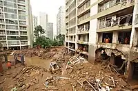 The 2011 Seoul floods were a series of floods in late July 2011 caused by heavy rainfall around Seoul, South Korea. The intense rain triggered a series of flash floods and landslides that killed at least 49 people[1] by July 27, leaving a total of more than 77 dead or missing.[2][3] On July 27, the number of killed rose further to 69.[4] The floods occurred primarily around the national capital Seoul and nearby Siheung regions. At least 86 power outages followed the landslides, affecting 125,000 people by July 27. Over 11,000 South Koreans were forced to evacuate.[5][6]