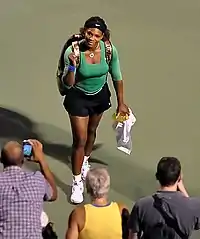 Williams came into the US Open as a protected ranking where she is a favorite having won 2 warm-up events and being in a 12-match winning streak. Williams began her Us Open campaign against Bojana Jovanovski and came up with a convincing double breadstick win in just 56 minutes.[30] In the second round, Williams took on Michaëlla Krajicek and dominated the first set with a bagel in just 23 minutes. The second set was also one sided with Williams taking it to advance to the third round.< In the next round, the American face Belarus' Victoria Azarenka. Williams continued her form winning the first 5 games before Azarenka could get a game. Williams closed it out on serve/ In the second set Williams broke in the 7th game and served for the match in the tenth game but was broken. The second set went into a tie-break with Williams winning it. In the fourth round, Williams faced former world no. 1 Ana Ivanovic. Williams took the first three games but Ivanovic got the next two games. Williams then broke at the 8th game and served out the set. Williams then closed out the second set with a single break to advance.[31] She then faced Anastasia Pavlyuchenkova in the quarterfinals. The first set began with six breaks in a row then followed by 5 straight holds of serve, before Williams got the ultimate break at the 12th game of the set to win it. Williams then took command winning the first three games of the second set before the Russian could net a game. Williams closed out the match winning the second set at one.[32] Williams then faced the World no. 1 Caroline Wozniacki in the semifinals, where she took the first set with two breaks, where it saw Williams hitting 15 winners to Wozniacki's 0. In the second set Williams broke in the fourth game, Williams then served for the match at the ninth game but double faulted at break point, but broke the next game to advance to her first Slam final since winning 2010 Wimbledon.[33] In the final she faced Samantha Stosur and was a heavy favorite to win the title. However, Stosur took a commanding first set win, 6–2. The second set faced controversy, as when Williams a break point down in the first game, Williams hit a forehand and shouted, "Come on!" as Stosur reached down for a backhand. Chair umpire Eva Asderaki ruled that Williams hindered Stosur's ability to complete the point and awarded it to Stosur. Stosur then strolled through the match and won the second set 6–3, ending Williams 18 match winning streak in the process.[34]