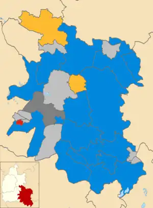 Elections were held for all 48 seats on the council. The Conservative Party won 33 seats. The Liberal Democrats won seven seats and Henley Residents Group won two. The Labour Party won one seat and two independent candidates each won a seat. The Conservative Party kept overall control of the council, with its majority reduced to 27.
