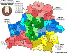 The elections were contested by the Communist Party, the Liberal Democratic Party, the United Left Party "A Just World", the Belarusian Social Democratic Party, the Republican Party of Labour and Justice, the Belarusian Socialist Sporting Party and the Agrarian Party.[4] The BPF Party and the United Civic Party both pulled out of the election a week before polling day.[5] Sixteen seats were uncontested.[5]