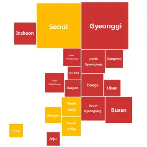 | Gyeonggi | 12,577 | 7,476 | 3,674 | 1,997 |