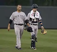 On May 9, Yankees second baseman Robinson Canó recorded his 1500th career hit with a single to center field at Coors Field in a 3-1 win against the Colorado Rockies. Without the help of core players Derek Jeter, Alex Rodriguez, Curtis Granderson, and Mark Teixeira, all of whom had been assigned to extended DL stints, the Yankees remained competitive through shrewd acquisitions of journeyman and platoon roleplayers such as Travis Hafner, Brennan Boesch, Lyle Overbay, and former Boston Red Sox first-baseman Kevin Youkilis. Though Granderson and Teixeira would return to the Yankee lineup by early summer, both would return to the DL after each suffered further injury. On May 30, the Yankees were swept by their crosstown rival New York Mets for the first time in the season series between the teams after a 3–1 loss at home. The Mets' sweep come a full decade after the 2003 Yankees won all six games from the Mets.[11][12] In the second game, Mariano Rivera suffered his first blown save of the season and the first in his career where he failed to get an out by allowing two runs in the ninth in a 2-1 loss.
