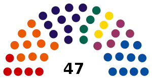 All 47 seats in the Assembly 23 seats needed for a majority | |||||||||||||||||||||||||||||||||||||||||||||||||||||||||||||||||||||||||||