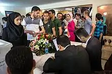 The Syrian government said election monitors would not be allowed from the United States, European Union, or the Organization for Security and Co-operation in Europe, but other observers would be present.[35] There were no independent election monitors for the election,[14] but an international delegation did observe the election. It was reported to have included representatives from more than 30 countries including Brazil,[36] India,[37] Iran,[38][36] Russia,[38][36] Uganda,[36] the US, and Venezuela.[36] Other delegates expected to join were from China, South Africa, Cuba, Nicaragua, Bolivia, Ecuador and Canada.[37] Among the delegates were Iran's Alaeddin Boroujerdi,[38] Alexey Alexandrov of Russia's ruling United Russia,[38] William Fariñas of Venezuela's ruling United Socialist Party of Venezuela,[39] Benna Namugwanya Bugembe of Uganda's ruling National Resistance Movement,[36] Brazilian Socorro Gomes of the Communist World Peace Council,[39] Indian anti-Zionist activist Feroze Mithiborwala,[37] and US-based pro-Assad activist Paul Larudee.[40]