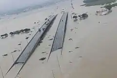 On 13 December, the state government requested the central government to release a total of ₹102.50 billion (US$1.53 billion) towards relief and rehabilitation efforts, including ₹50 billion (US$626 million) for a housing project to accommodate 50,000 displaced people, ₹7.5 billion (US$94 million) to rehouse another 50,000 people who had formerly lived in huts destroyed by the floods and ₹45 billion (US$564 million) to rebuild damaged roads, drains, tap water pipes and sewers in urban localities.[56] On 22 December, the government further revised its estimates, requesting ₹174315.1 million (US$2.63 billion) in addition to the ₹84.81 billion previously requested for the flood damage sustained in November, for a total of ₹259125.1 million (US$3.91 billion).[9]