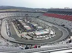 Bristol Motor Speedway, formerly known as Bristol International Raceway and Bristol Raceway, is a NASCAR short track venue located in Bristol, Tennessee. Constructed in 1960, it held its first NASCAR race on July 30, 1961. Despite its short length, Bristol is among the most popular tracks on the NASCAR schedule because of its distinct features, which include extraordinarily steep banking, an all concrete surface, two pit roads, and stadium-like seating. It has also been named one of the loudest NASCAR tracks.