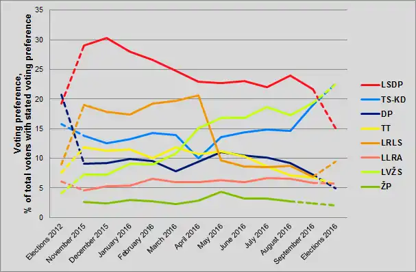 19. "Paskutinė apklausa prieš rinkimus: socialdemokratų atotrūkis ištirpo" [The last poll before the elections: Social Democrats' advantage has melted away]. delfi.lt (in Lithuanian). 4 October 2016. Retrieved 4 October 2016.
