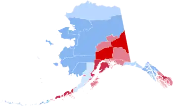 This is the first time since 1984 that a Republican won without Kusilvak Census Area, the first time since 1980 that they won without Nome, Yukon–Koyukuk Census Area, Northwest Arctic Borough, and Dillingham Census Area. The first since 1972 to win without North Slope Borough. The first ever to win without Aleutians West Census Area, Haines Borough, and Lake and Peninsula Borough.