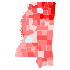 Mississippi has not voted Democratic since 1976. Since that time, Republicans have dominated the state's political elections, and so Trump was widely expected to win the state. Indeed, Trump carried it with 57.86% of the vote, while Clinton received 40.06%.[2] Trump's 17.80% margin of victory was a 6.30% increase over the 11.50% margin of victory by which Republican nominee Mitt Romney won the state over Barack Obama in 2012. This also marked the first time since 1988 that Madison County voted more Democratic than the state as a whole. Trump became the first Republican to win the White House without carrying Oktibbeha County since Richard Nixon in 1968, as well as the first to do so without carrying Copiah, Pike, or Yazoo Counties since Ronald Reagan in 1980.