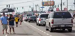 The shooting occurred during a period of unrest in Baton Rouge, though it is unclear if the events are related.[12] Baton Rouge was experiencing ongoing protests following the officer-involved killing of Alton Sterling less than two weeks before on July 5.[13][14] On July 7, the FBI's New Orleans field office issued a warning about "threats to law enforcement and potential threats to the safety of the general public" stemming from the death of Sterling.[15] Within the previous week, four suspects were arrested in connection with an alleged plot to kill Baton Rouge police officers, which was described as a credible threat by law enforcement officials.[13][16] Ten days earlier, five police officers were killed in a mass shooting in Dallas.[7]