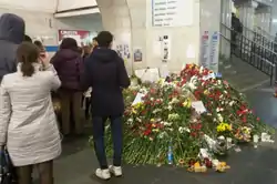 ![]() Memorial of flowers at the metro station Tekhnologichesky Institut after terrorist attack