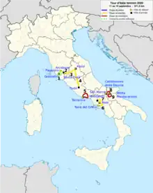 The race consisted of 9 stages totalling 975.8 km (606.3 mi), which began in Grosseto on 11 September with a team time trial and finished in Motta Montecorvino on 19 September.[2]