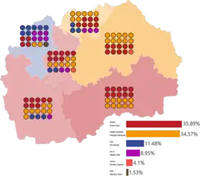 The Democratic Union for Integration (DUI), which is the largest Albanian party in N. Macedonia and has been part of most government coalitions since the 2002 elections, announced its candidacy early on. It campaigned under the stated goal of electing an ethnic Albanian Prime Minister of North Macedonia for the first time.[24] Its candidate for Prime Minister was Naser Ziberi, former Minister of Labour within SDSM-led government of North Macedonia.