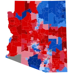 Arizona was a heavily contested state throughout the election. Once a reliably Republican state, it has trended more Democratic in recent years, with Trump winning it by just 3.5% in 2016. Compared to past Republicans, Trump's performance was historically weak: Mitt Romney won it with a 9.0% margin in 2012 over Barack Obama,[24] John McCain by 8.5% in 2008 also against Obama,[25] and George W. Bush by 10.5% in 2004 against John Kerry.[26] Arizona was one of just ten states to swing more Democratic in 2016, and its 5.5 percentage point swing was the fourth largest in the country.[27] The swing mirrored a nationwide pattern where suburban voters, formerly the principal Republican voting base, swung deep into the Democratic column. Arizona's leftward swing was also credited to a rapidly growing Hispanic population.