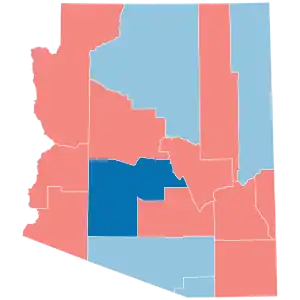 Trump carried Arizona in 2016 by 3.5%, and it was considered a vital battleground in this election. The state's bitterly competitive nature was attributed to diversification of Maricopa County, a traditionally Republican stronghold that holds 61.6% of the state's population.[3][4] Maricopa County was seen as vital to either candidate's chances in the state–only one presidential candidate has ever won the state without carrying it.[5] Biden became the first Democrat to win Arizona since Bill Clinton in 1996, and only the second since Harry S. Truman in 1948. He is also the first Democrat to win Maricopa County since Truman,[6] with a margin of 2.2%, or 45,109 votes.[7] The county is home to Phoenix (the state capital and largest city), Mesa, Chandler, Scottsdale, Glendale, Tempe, and several other major cities. High turnout among Hispanic/Latino and Native American voters was also seen as vital. Polls of the state throughout the campaign generally showed a Biden lead, albeit by a slender margin. Prior to election day, 11 of the 16 news organizations considered that Arizona was leaning towards Biden; the other five considered it a toss-up.