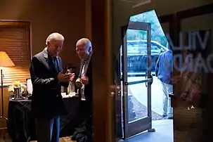 Per exit polls by the Associated Press,[8] Biden won 59% of Latino voters, including 65% of Latinos of Mexican heritage, who made up the vast majority of the Hispanic electorate. Hispanic and Latino voters comprised 18% of the electorate, up from 15% in 2016[9] and 16% in 2008.[10] He won 58% of independents and was even able to notch 9% of Republicans and 10% of conservatives. That support allowed Biden to narrowly flip Maricopa County, making him the first Democrat since Truman in 1948 to do so. He held his deficit among suburban voters to 51–48 despite Republicans having won them by double digits in 2016, 2012, and 2008. Biden won college-educated voters 53–46, a 17-point swing from 2016 when Trump won them by 10 percentage points. Additionally, Biden performed relatively well for a Democratic candidate among the state's Latter-day Saint voters, carrying 18% of their vote.[11] Biden had touted his endorsement from Cindy McCain and leaned into his friendship with the late Senator John McCain in advertising.[12] Trump disparaged McCain on several instances at rallies while campaigning and during his presidency, even after McCain's death,[13] which some credited as the finishing blow to his performance among Arizona's moderate voter base.[14]