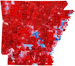 Per exit polls by the Associated Press, Trump's strength in Arkansas came from 86% with White, born again/evangelical Christians. Fifty-two percent of voters opposed changing the Arkansas state flag to remove the star that symbolizes the Confederacy, and these voters backed Trump by 88%–10%.[45]