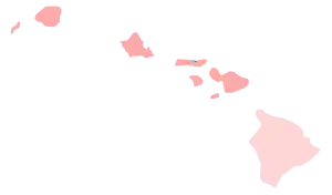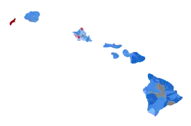Biden won Hawaii with 63.7% of the vote, with a 29.5% margin over Trump, who earned 34.3%. Both major parties improved over 2016, when third parties earned nearly 8% of the vote; Biden's percentage of the vote was slightly higher than Hillary Clinton's 62.9%, while Trump improved over his 30.3% share of the 2016 vote. However, Biden's margin of victory was smaller than Clinton's 32.5%. Hawaii was one of only seven states and the District of Columbia where Trump's margin increased from 2016, and its 2.7% shift was the largest. Trump won more precincts than he did in 2016, winning more of the west coast of Oahu than he did before and every single vote on Niihau. Trump won more votes in Hawaii than any Republican in history (but not a larger percentage), narrowly beating George W. Bush's performance in 2004.[5] Despite this modest pro-Trump margin swing, Biden received more votes than Clinton, as was the case for the six other states (California, Nevada, Utah, Arkansas, Florida, and Illinois) and the District of Columbia that he won.[6]