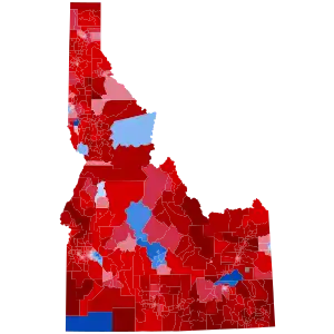 Trump easily carried Idaho on Election Day, winning 63.9% of the vote to Biden’s 33.1%. Trump's percentage was higher than the 59.2% he received in 2016 due to the lack of third-party voters (namely Evan McMullin of neighboring Utah), but his margin of victory slightly declined, shrinking from 31.8% in 2016 to 30.8% in 2020.