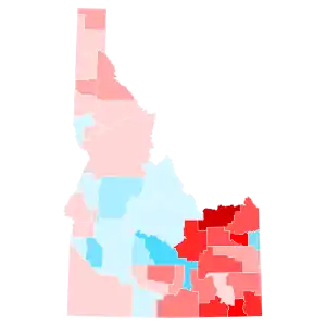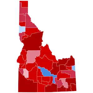 | Twin Falls | 25,897 | 70.93% | 9,391 | 25.72% | 770 | 2.11% | 159 | 0.44% | 131 | 0.36% | 82 | 0.22% | 71 | 0.19% | 11 | 0.03% | 16,506 | 45.21% | 36,512 |