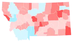 | Ravalli | 19,114 | 67.05% | 8,763 | 30.74% | 630 | 2.21% | 10,351 | 36.31% | 28,507 |