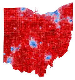The 2020 United States presidential election in Ohio was held on Tuesday, November 3, 2020, as part of the 2020 United States presidential election in which all 50 states plus the District of Columbia participated.[2] Ohio voters chose electors to represent them in the Electoral College via a popular vote, pitting the Republican Party's nominee—incumbent President Donald Trump and his running mate, Vice President Mike Pence—against the Democratic Party nominee, former Vice President Joe Biden and his running mate, California Senator Kamala Harris. Ohio had 18 electoral votes in the Electoral College.[3]