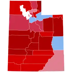 Prior to the election, all 14 news organizations projected Utah as leaning towards Trump, or a safe red state. Throughout the campaign, Trump did not exceed 60% in a single poll conducted. Some polls even showed the president leading by single digits against Biden, likely indicating a closer than normal contest in this traditionally Republican stronghold. In past elections, Utah has often given the GOP nominee one of their largest victories in the nation, having awarded George W. Bush and Mitt Romney over 70% of the vote in 2004 and 2012, respectively. However, Trump only won Utah with 58.1% of the vote and a margin of 20.5%, which although an improvement on his 18.1% margin over Hillary Clinton in 2016, is still relatively narrow compared to past Republican nominees. He performed strongly in rural areas, as well as in some larger counties like Utah (Provo), Davis (Farmington), and Weber (Ogden). Trump improved over his 45.5% plurality win in 2016, due in part to the lack of a strong third party presence, as Evan McMullin, who endorsed Biden,[4][5] earned 21.5% of the vote that year. The election was far more of a two-party contest in 2020, with third parties receiving 4.2% of the vote, compared to 27% in 2016. Despite this, the Associated Press reported a less partisan and more cooperative cultural environment in Utah compared to other states during the election.[6]