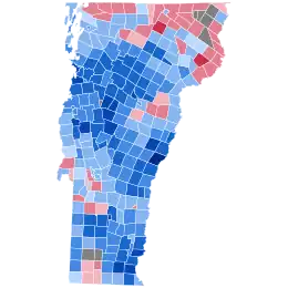 The 2020 United States presidential election in Vermont was held on Tuesday, November 3, 2020, as part of the 2020 United States presidential election in which all 50 states plus the District of Columbia participated.[2] Vermont voters chose electors to represent them in the Electoral College via a popular vote, pitting the Republican Party's nominee, incumbent President Donald Trump, and running mate Vice President Mike Pence against Democratic Party nominee, former Vice President Joe Biden, and his running mate California Senator Kamala Harris. Vermont has three electoral votes in the Electoral College.[3] This is the first time Vermont was the strongest state for either party since 1956, when it was Republican Dwight Eisenhower's best state, showcasing the state's leftward swing. Vermont also saw the largest increase in turnout from 2016, increasing 14.3%.[4] Biden greatly improved on Hillary Clinton's 55.7% vote share and 25.9% margin from 2016, when third-party candidates received over 14% of the vote.[5] Biden's performance was also the fourth-strongest Democratic performance in state history. Trump carried only one county, the sparsely-populated Essex County bordering New Hampshire, which had voted for the winner from 1980 to 2016. Consequently, Biden was the first Democrat to win without the county since Jimmy Carter in 1976.
