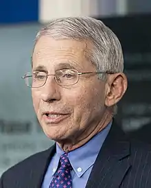 By the first week of March, the government had changed its tune. Anthony Fauci, the director of the National Institute of Allergy and Infectious Diseases warned that the sick and elderly were particularly vulnerable to the coronavirus, saying people to avoid large crowds.[169] On March 5, Congress passed and President Trump signed an $8.3 billion package to fight COVID-19.[170] The CDC warned against cruise-ship travel.[169] The National Basketball Association (NBA) suspended its season on March 11 after one of its players tested positive for COVID-19.[171] States started closing their schools and universities.[172] Democratic presidential hopefuls Joe Biden and Bernie Sanders held a virtual debate two days before the March 17 Illinois Democratic Primary election.[173]