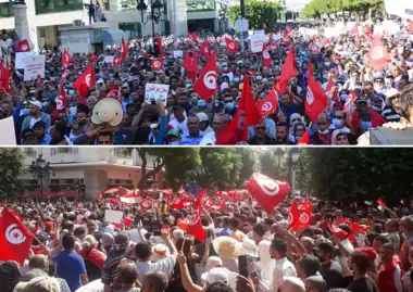 ![]() Above: an anti-coup demonstration, Tunis, 10 October 2021 Below: a pro−Saied demonstration, Tunis, 3 October 2021 | |||