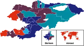 - "Бирдиктүү шайлоо округу боюнча Кыргыз Республикасынын Жогорку Кеӊешинин депутаттарын шайлоонун алдын ала жыйынтыгы". shailoo.gov.kg (in Kyrgyz). Retrieved 29 November 2021..