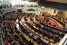During the 2018 legislative election on 4 March 2018, the ruling Farabundo Martí National Liberation Front (FMLN) won 23 seats in the Legislative Assembly (a loss of 8 seats), the opposition Nationalist Republican Alliance (ARENA) won 37 seats (an increase of 2 seats), and the remaining 23 seats were divided by other political parties.[6] The 12th session of the Legislative Assembly began on 1 May 2018. ARENA formed a coalition government with the National Coalition Party (PCN); the two parties agreed that ARENA deputy Norman Quijano would serve as the president of the Legislative Assembly from 1 May 2018 to 1 December 2019 and that PCN deputy Mario Ponce would serve from 1 December 2019 to 1 May 2021.[7]